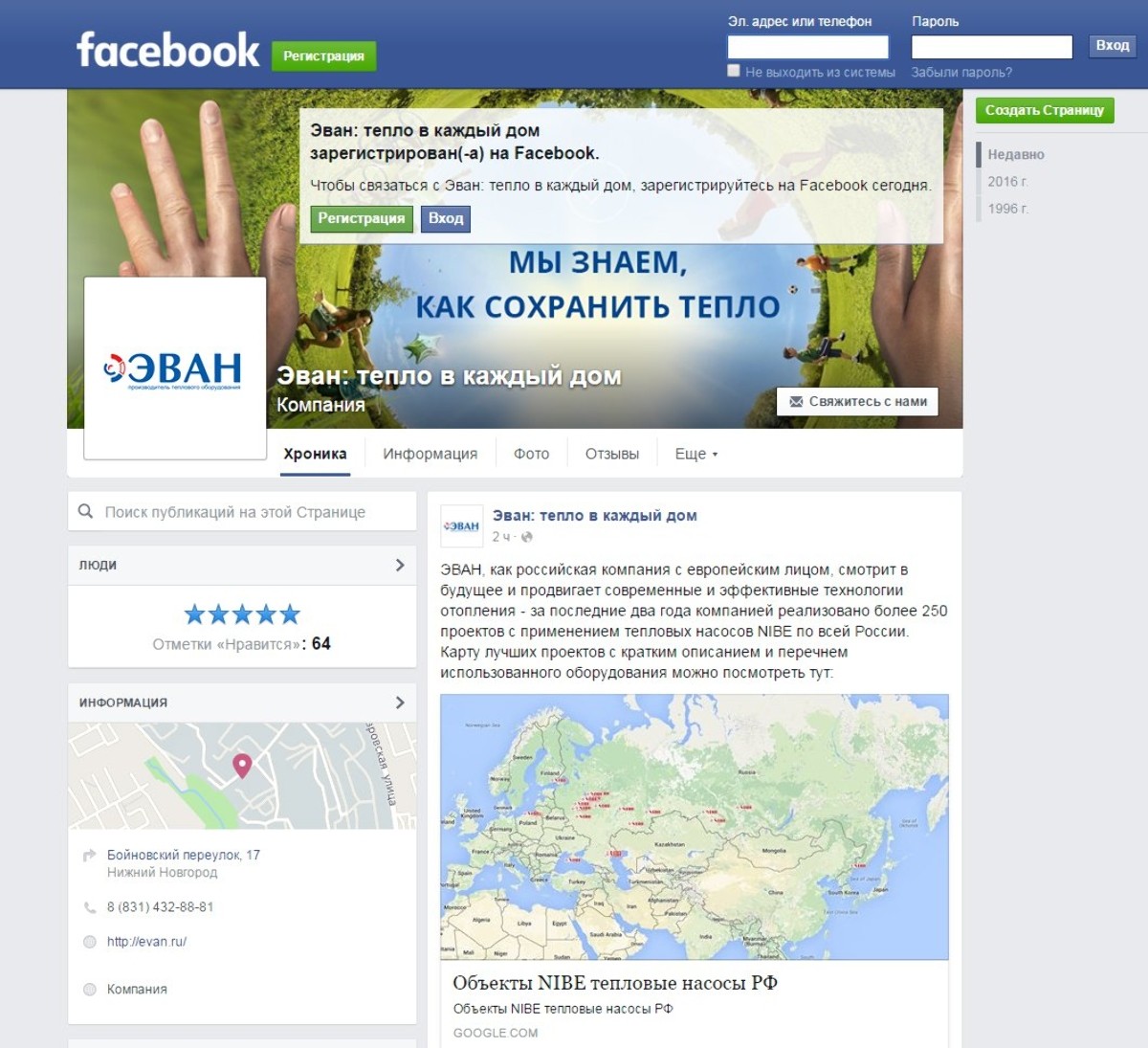 Рады сообщить, что теперь все пользователи самой популярной в мире социальной сети Facebook могут присоединиться к сообществу ЭВАН! На нашей странице вы найдете много полезной и развлекательной информации, в том числе новости, статьи, экспертные мнения и интервью. Ставьте "Нравится" тут - ЭВАН: тепло в каждый дом.