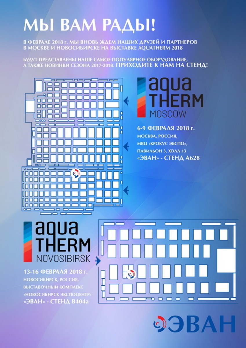 Новосибирск: Дата: 13-16 февраля 2018 г. Место: МВК «Новосибирск Экспоцентр» Стенд «ЭВАН»: В404а Для бесплатного посещения выставки